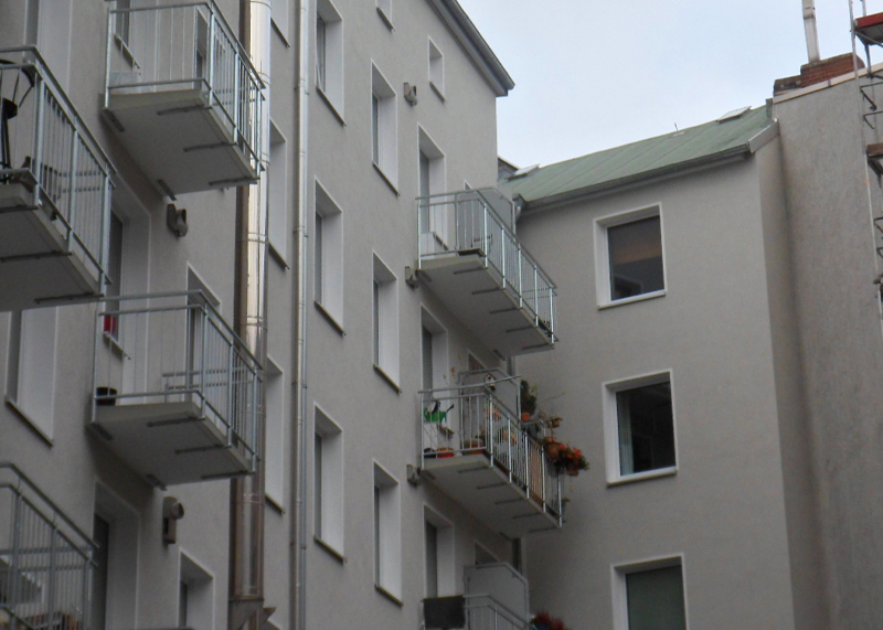 - Einbau neuer Geländer an allen Balkonen und der umlaufenden Dachterrasse