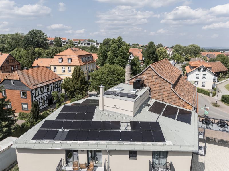 So ist es möglich, dass 100 % des erzeugten PV-Stroms im Hotel selbst genutzt werden. Ein fossiler Spitzenlasterzeuger ist nicht erforderlich.